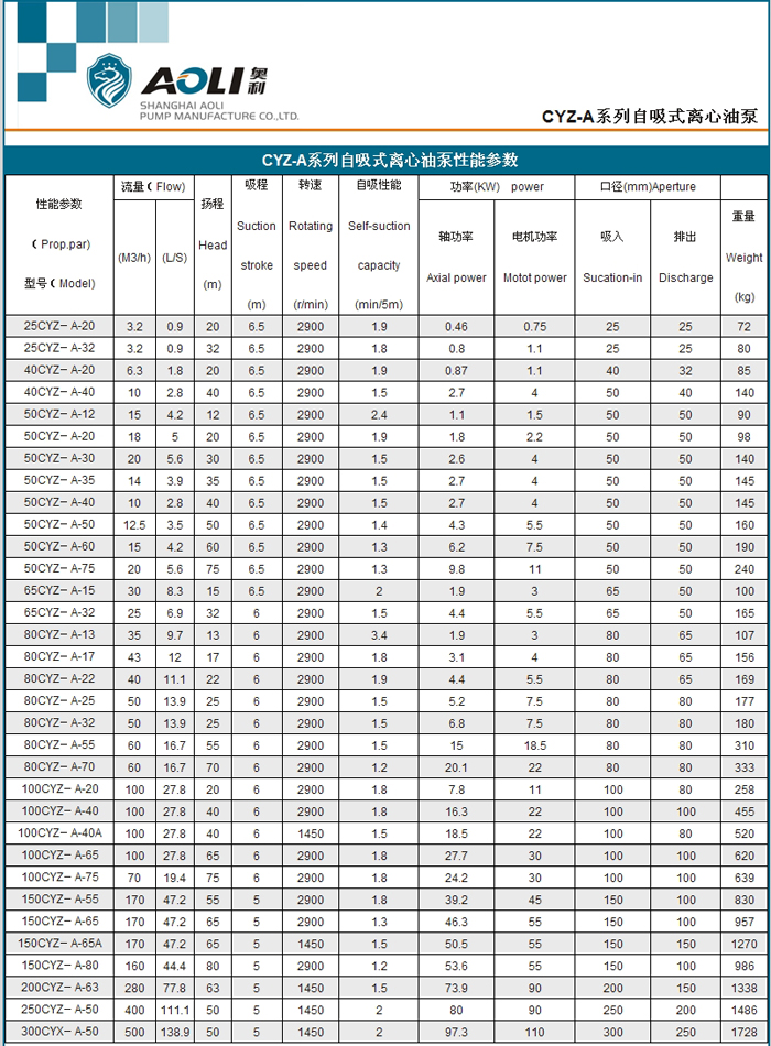 本单位生产的CYZ-A型自吸式离心油泵是根据国内外有关技术资料经消化、吸收、改进后研制而成的新泵类产品,,该泵适用于石油行业、陆地油库、油罐车的理想产品,并适合于作船用货油泵、舱底泵、消防泵和压载泵及机器冷却水循环等,分别输送汽油、煤油、柴油、航煤等石油产品和海水、清水,介质温度-20℃~140℃,如输送化工液体可改用耐腐蚀机械密封。