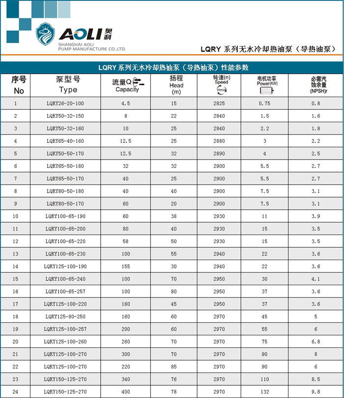 LQRY型系列热油泵技术先进、效率高,在热态下能长期稳定运转无泄漏,无附加冷却系统,使用可靠等特点,在我国载热体加热系统中得到了广泛的使用,已经进入石油、化工、橡胶、塑料、制药、纺织、印染、筑路、食品等各个工业领域,主要用于输送不含固体颗粒的弱腐性高温液体,使用温度≤370℃,是一种理想的热油循环泵。